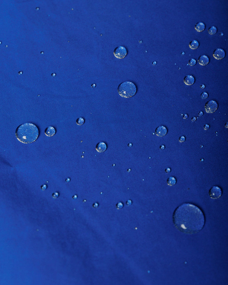 Waxed cotton is a traditional performance fabric made by treating cotton with a protective wax coating. The wax creates a water-repellent barrier while maintaining the natural properties of cotton. Think of it as nature's way of waterproofing – similar to how water beads off duck feathers.