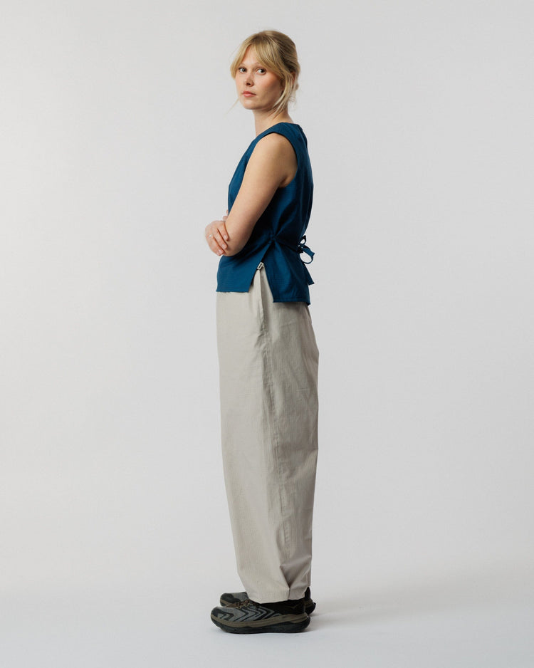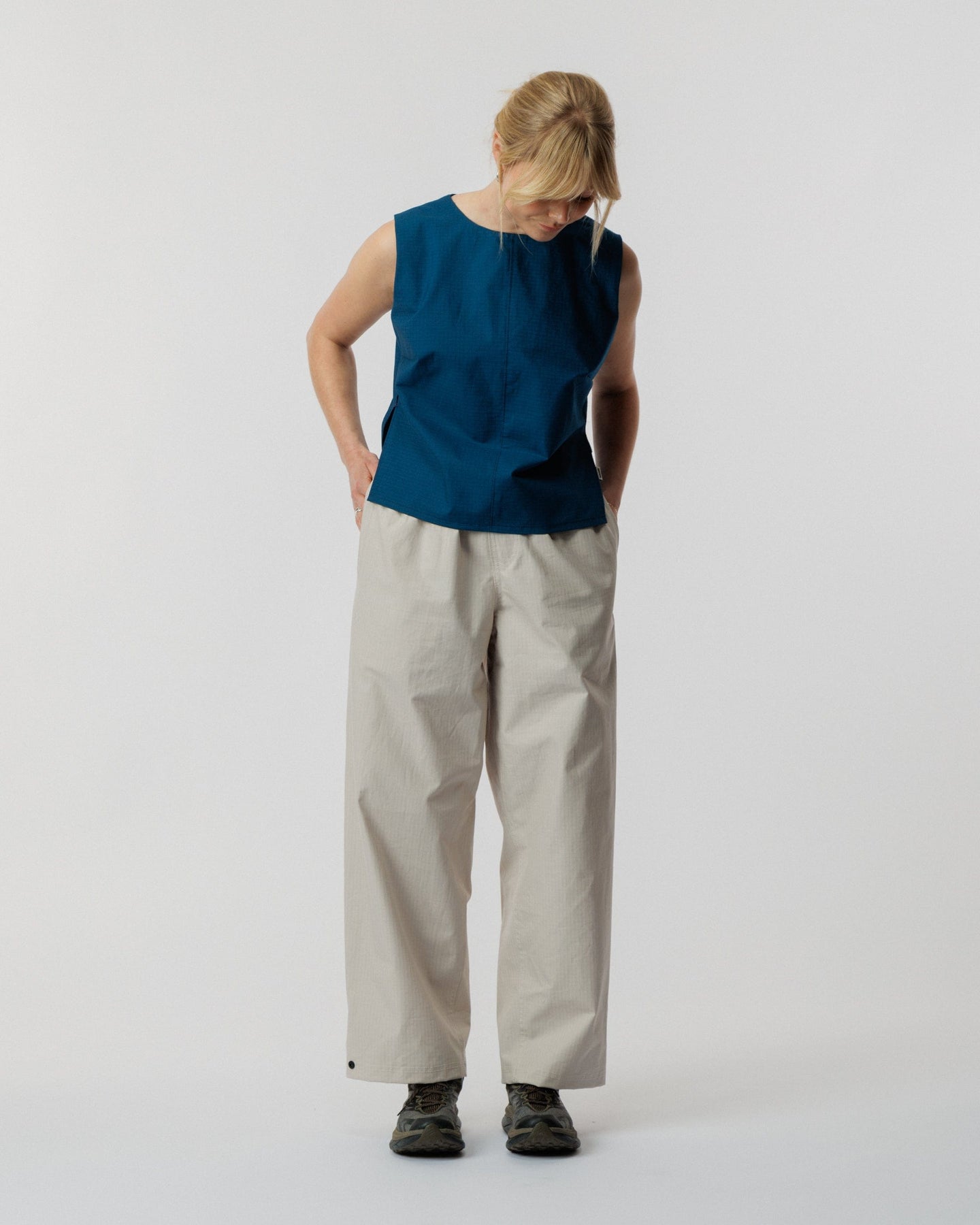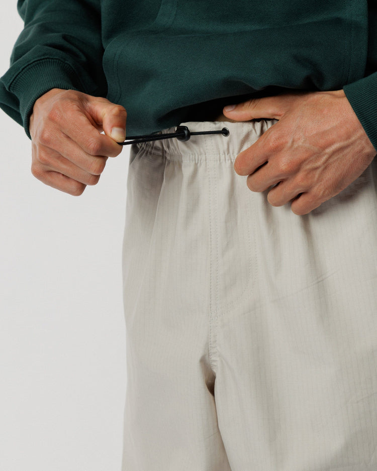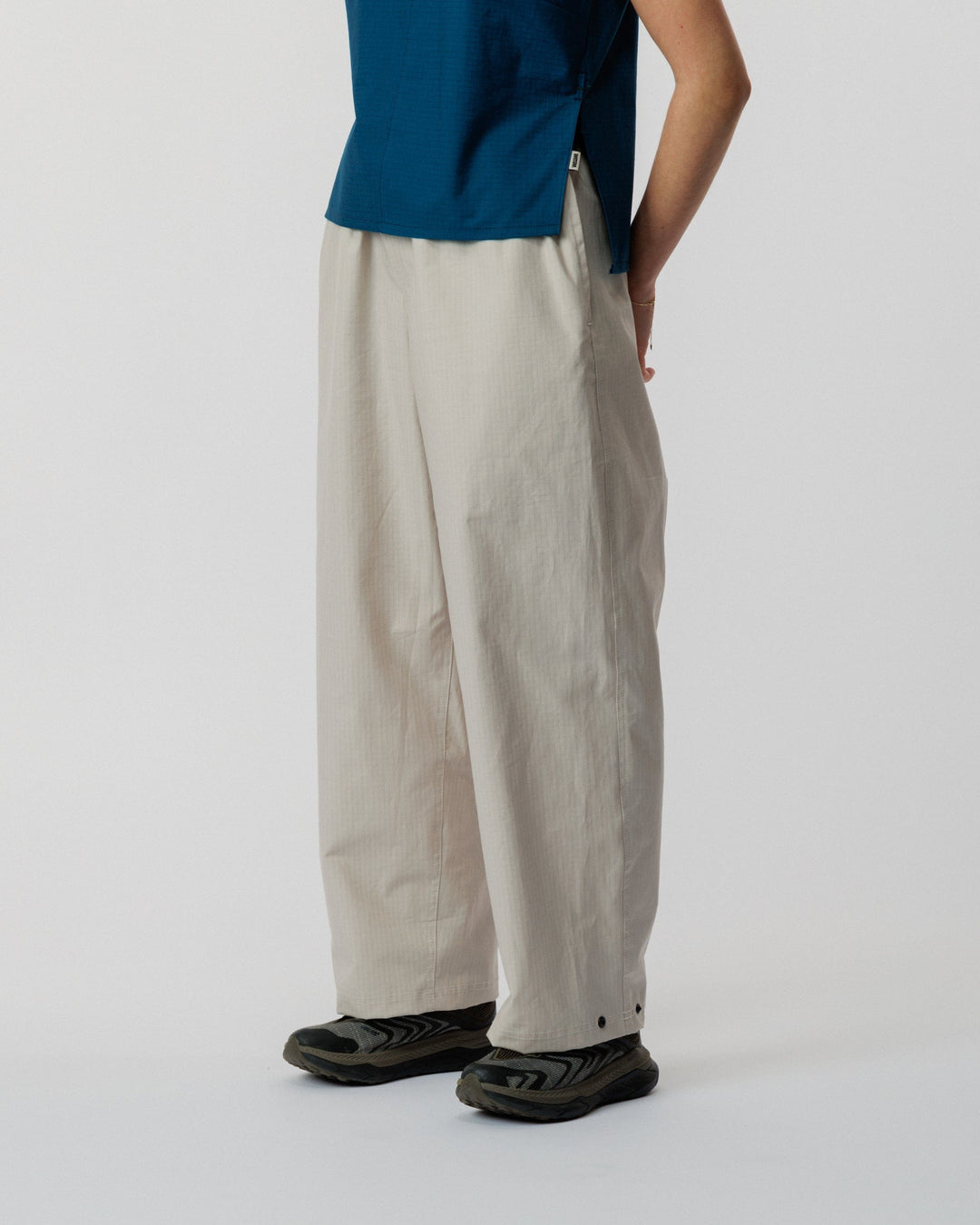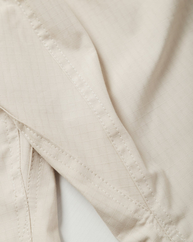Crafted from lightweight organic ripstop cotton, the Ripstop Zama Pant in stone embodies the ultimate workwear fabric philosophy. The innovative grid structure means if they ever tear during your explorations, rips will only travel in straight lines—making repairs simple and extending their lifespan.