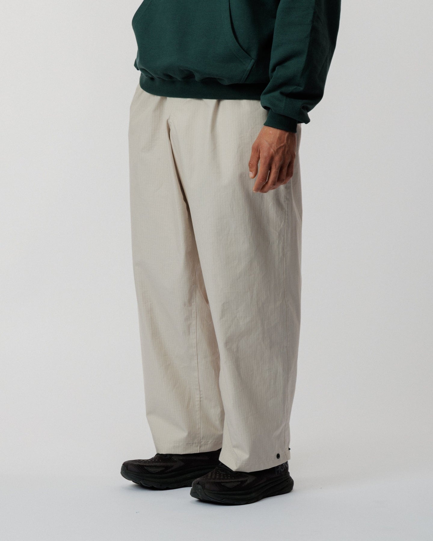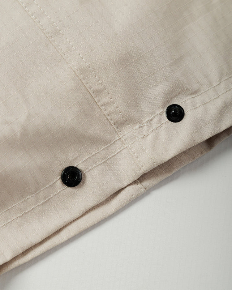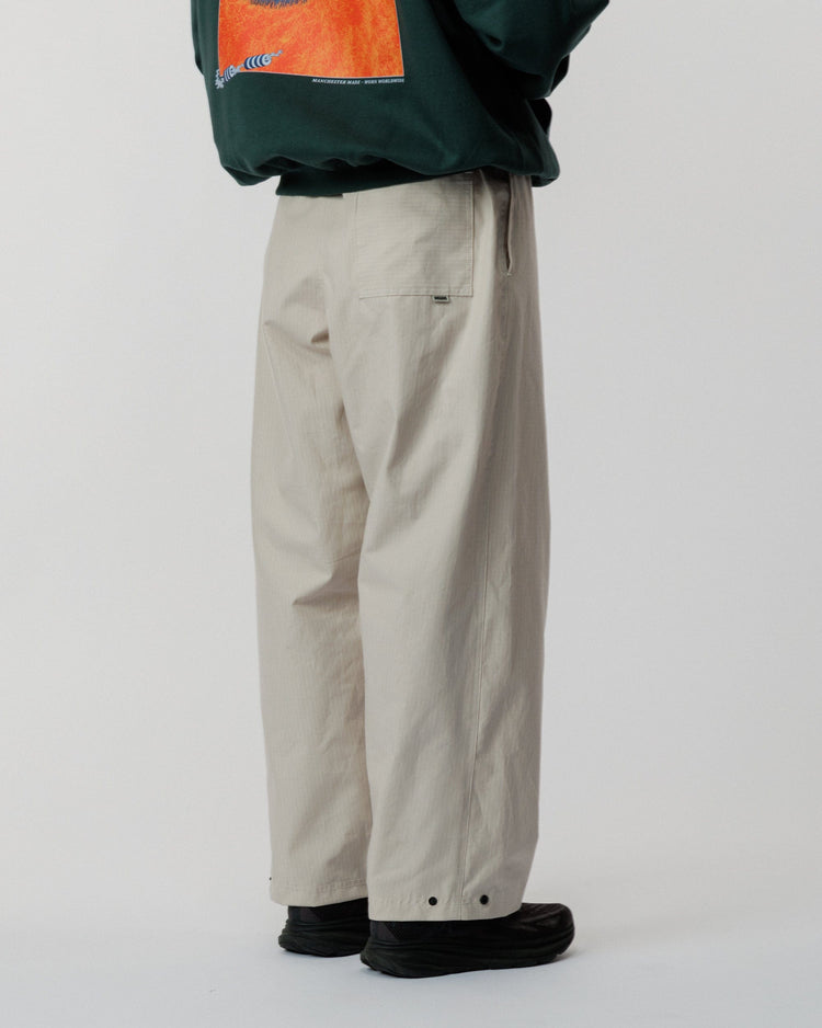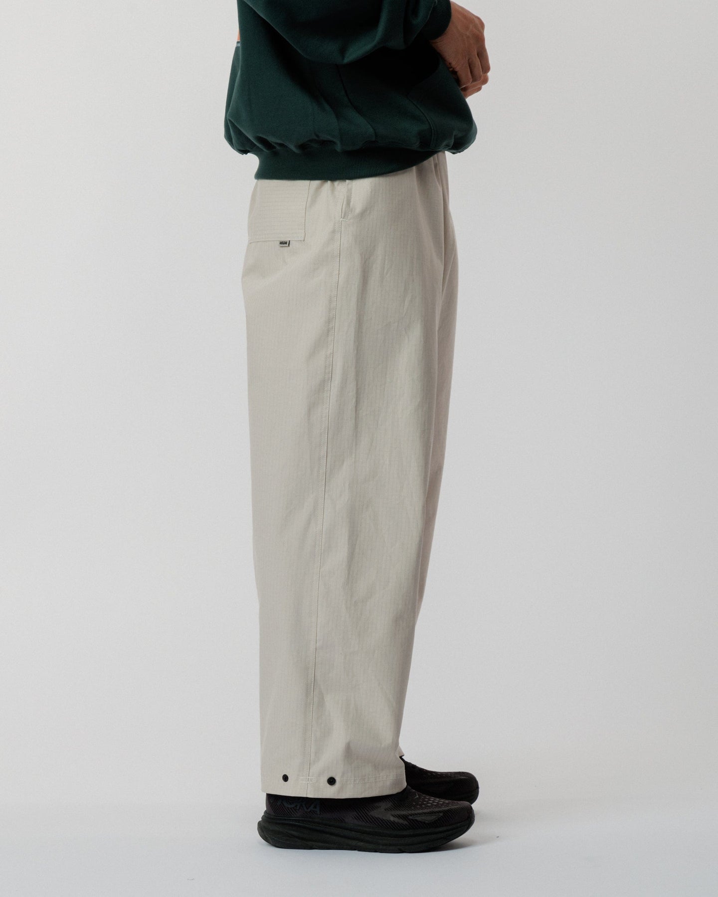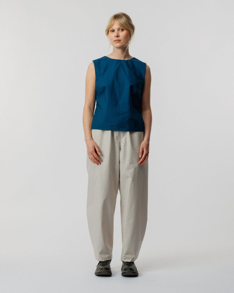 Crafted from lightweight organic ripstop cotton, the Ripstop Zama Pant in stone embodies the ultimate workwear fabric philosophy. The innovative grid structure means if they ever tear during your explorations, rips will only travel in straight lines—making repairs simple and extending their lifespan.