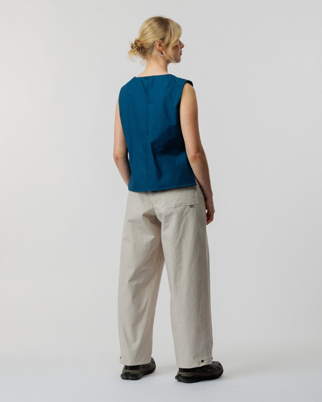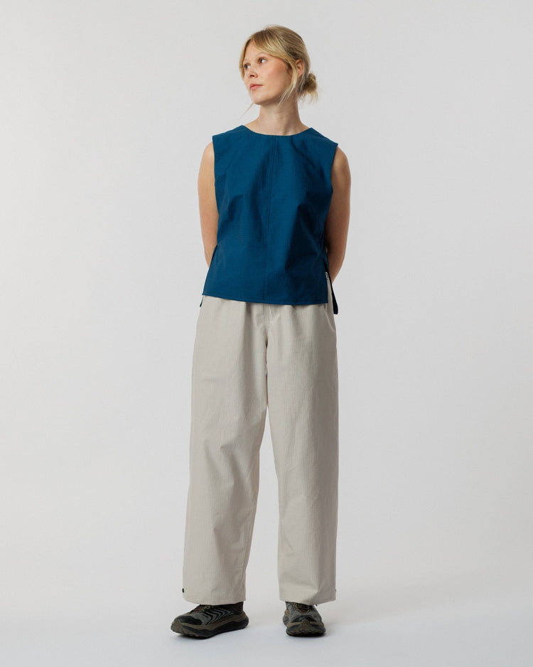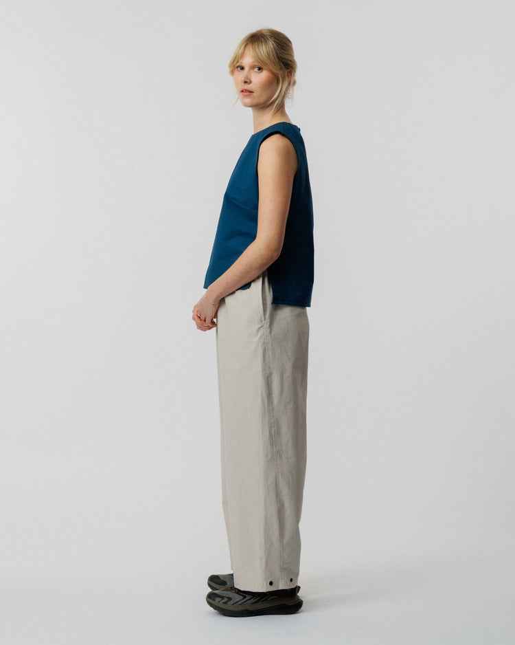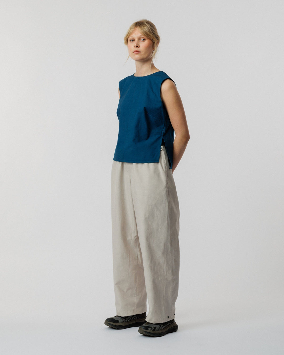 Crafted from lightweight organic ripstop cotton, the Ripstop Zama Pant in stone embodies the ultimate workwear fabric philosophy. The innovative grid structure means if they ever tear during your explorations, rips will only travel in straight lines—making repairs simple and extending their lifespan.