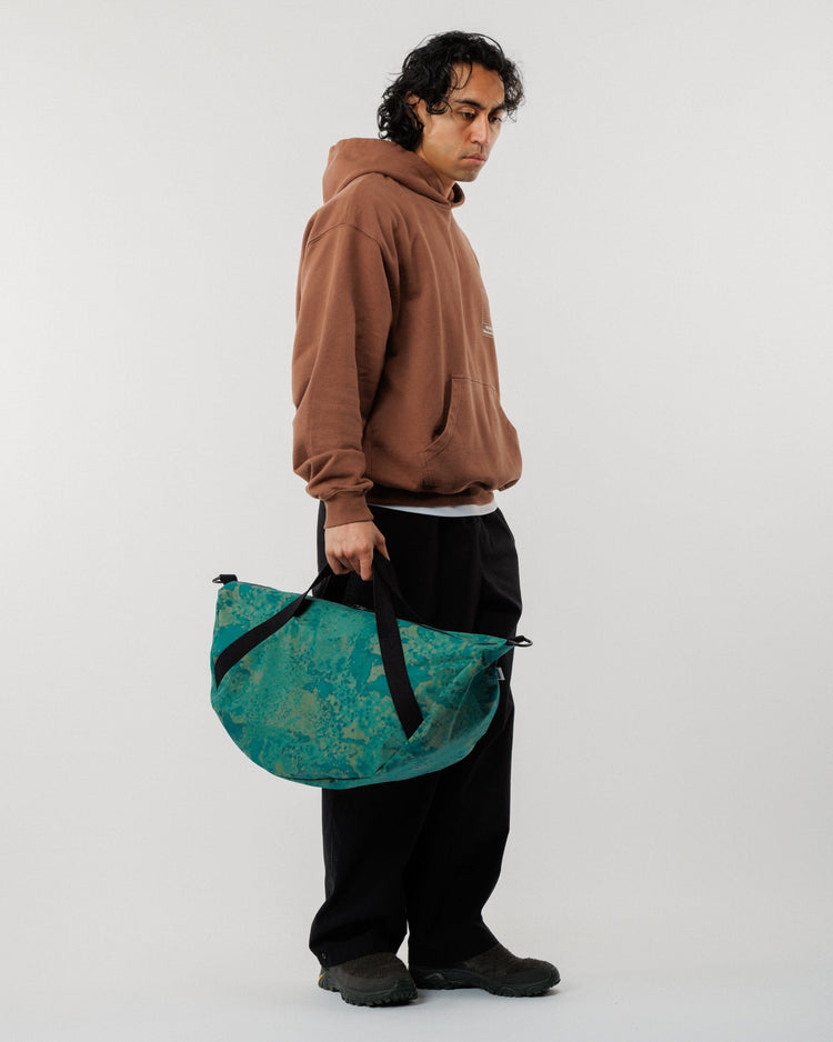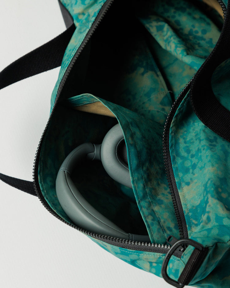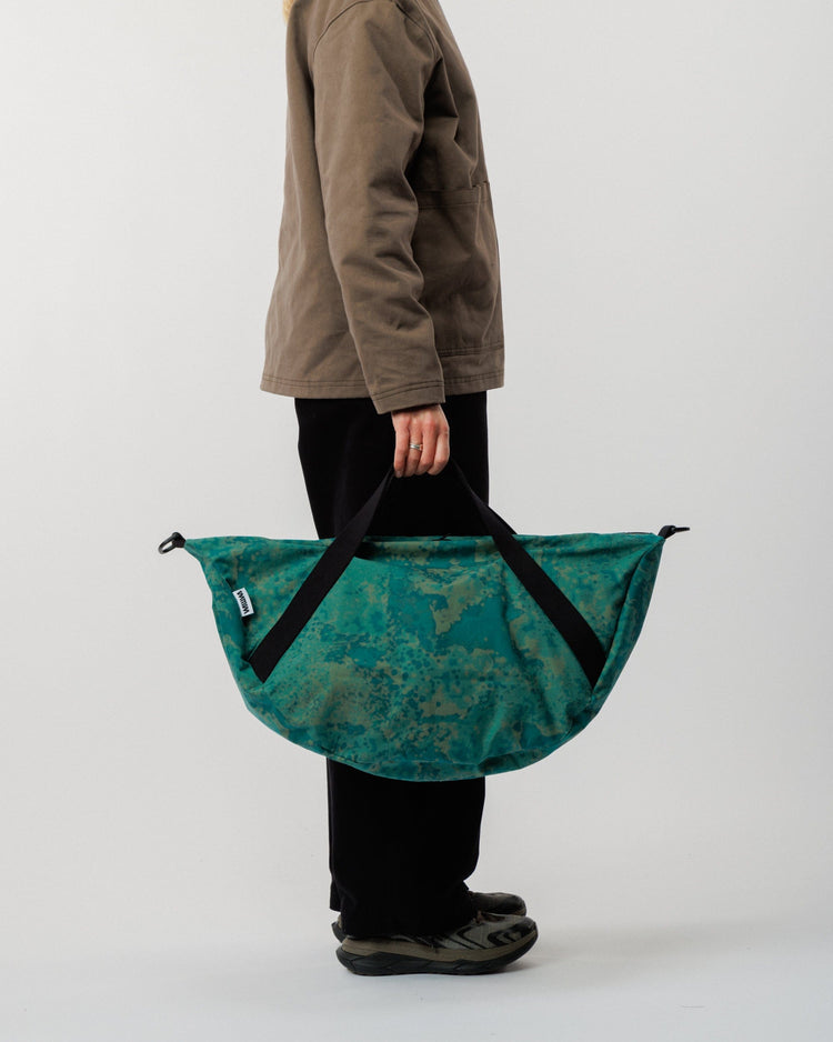 Built for everyday journeys and weekend escapes, the Limited Edition Blue Ink Print Duffle Bag pairs rugged functionality with a refined, textured aesthetic. The dry wax organic cotton fabric features a unique camouflage-inspired print, reminiscent of ink dispersing through water or lichen spreading across stone, creating a subtle, unique finish.