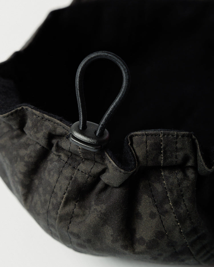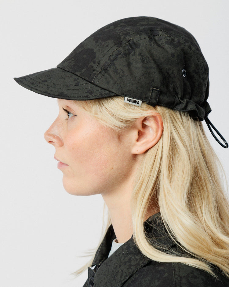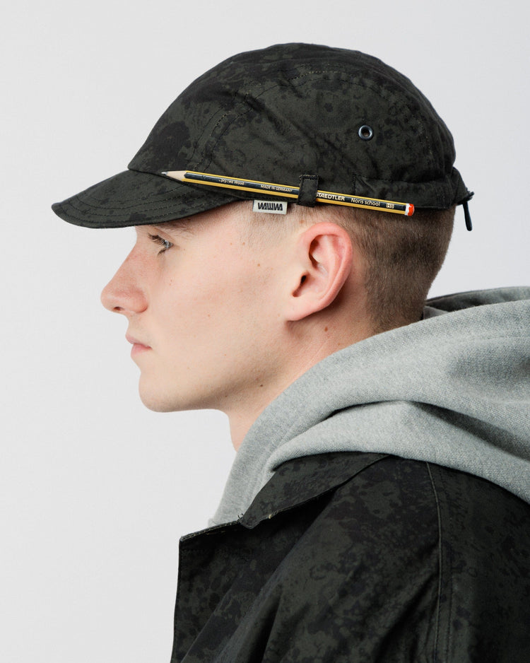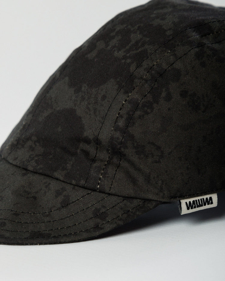 Introducing the Limited Edition Black Ink Print Dry Wax Oak Cap. Crafted in our Manchester workshop from 100% GOTS-certified organic dry-waxed cotton, the cap features a unique, subtle textured Black Ink pattern reminiscent of ink dispersing through water.