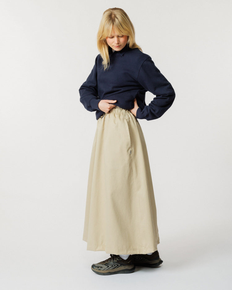 Meet the Moleskin Lined Ayla Skirt in ecru  - Our best-selling Ayla Skirt with a winter upgrade. Designed to look and feel just like the original, this version features a premium Italian moleskin lining that adds warmth without bulk. A toasty, cold-weather staple that still drapes beautifully in our signature A-line silhouette. You might even find yourself skipping tights.