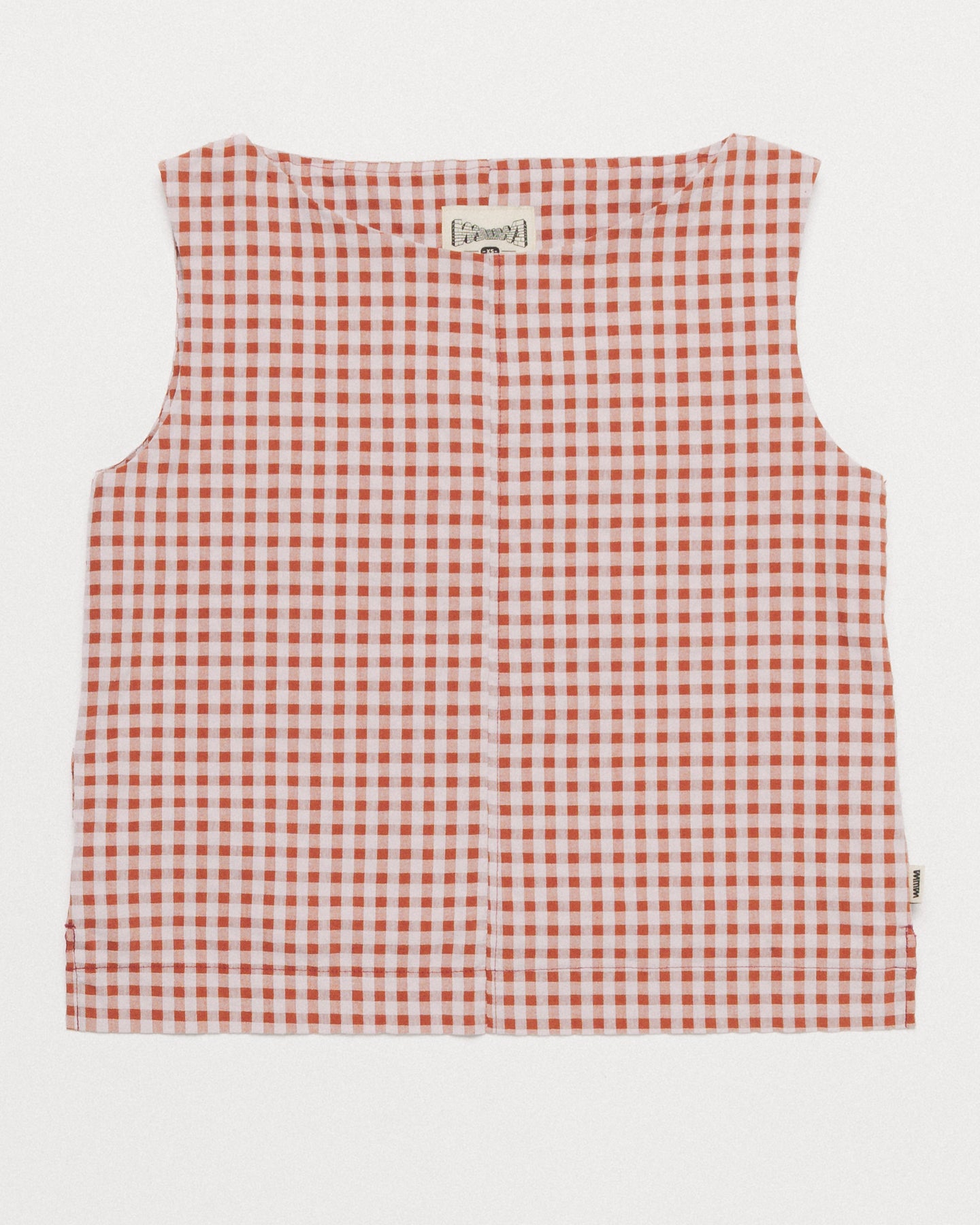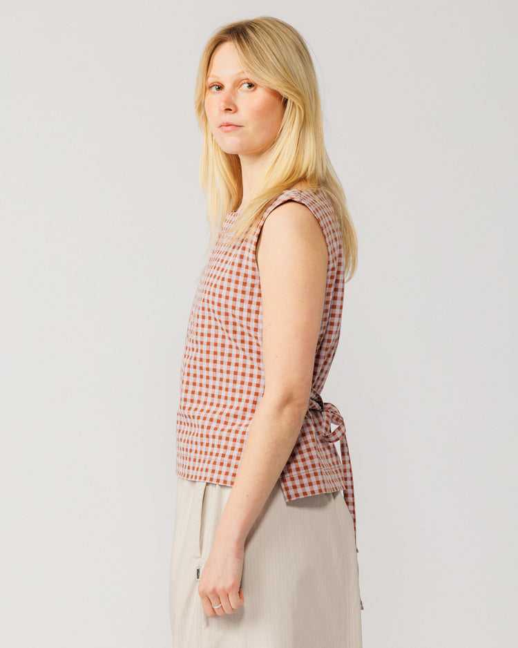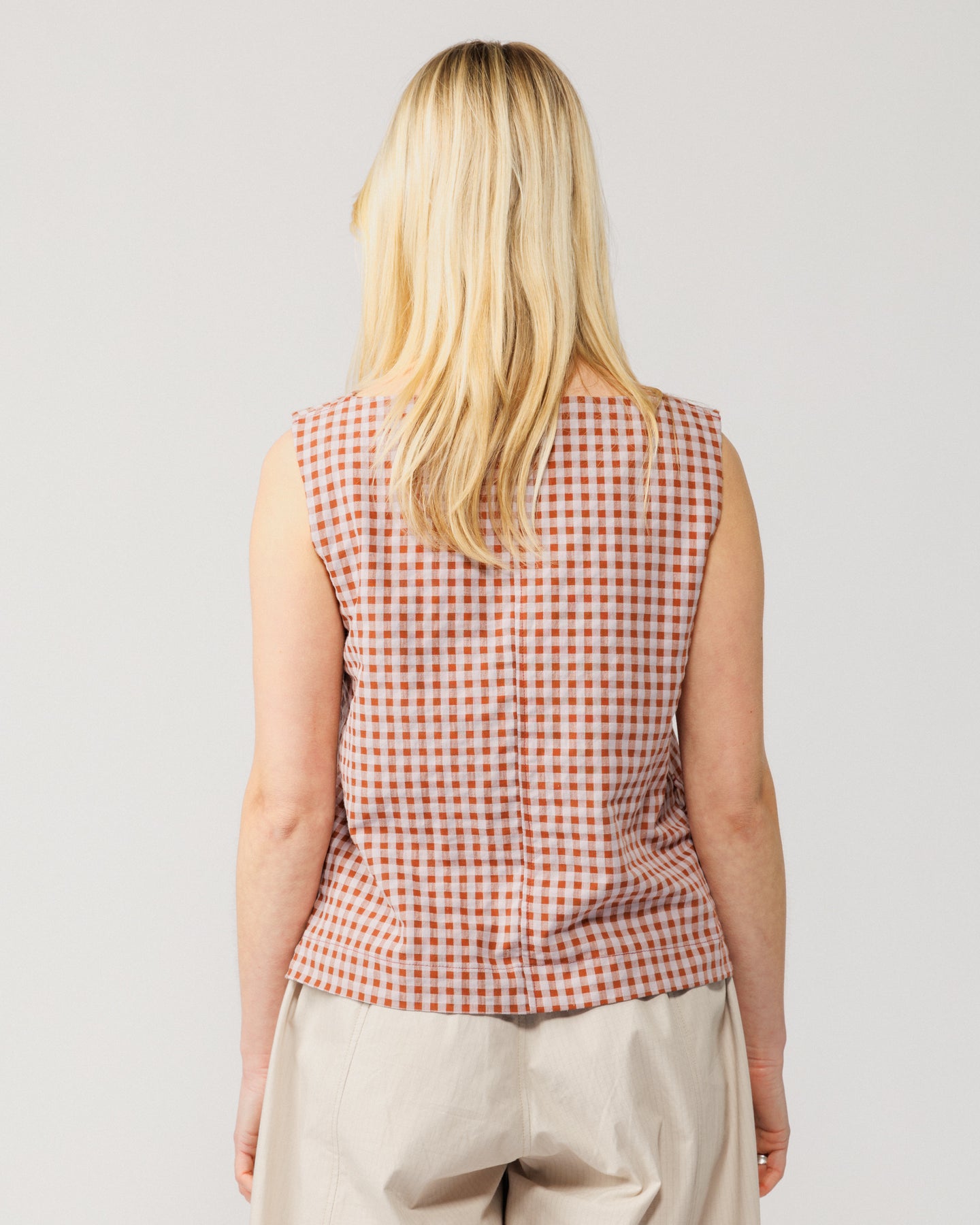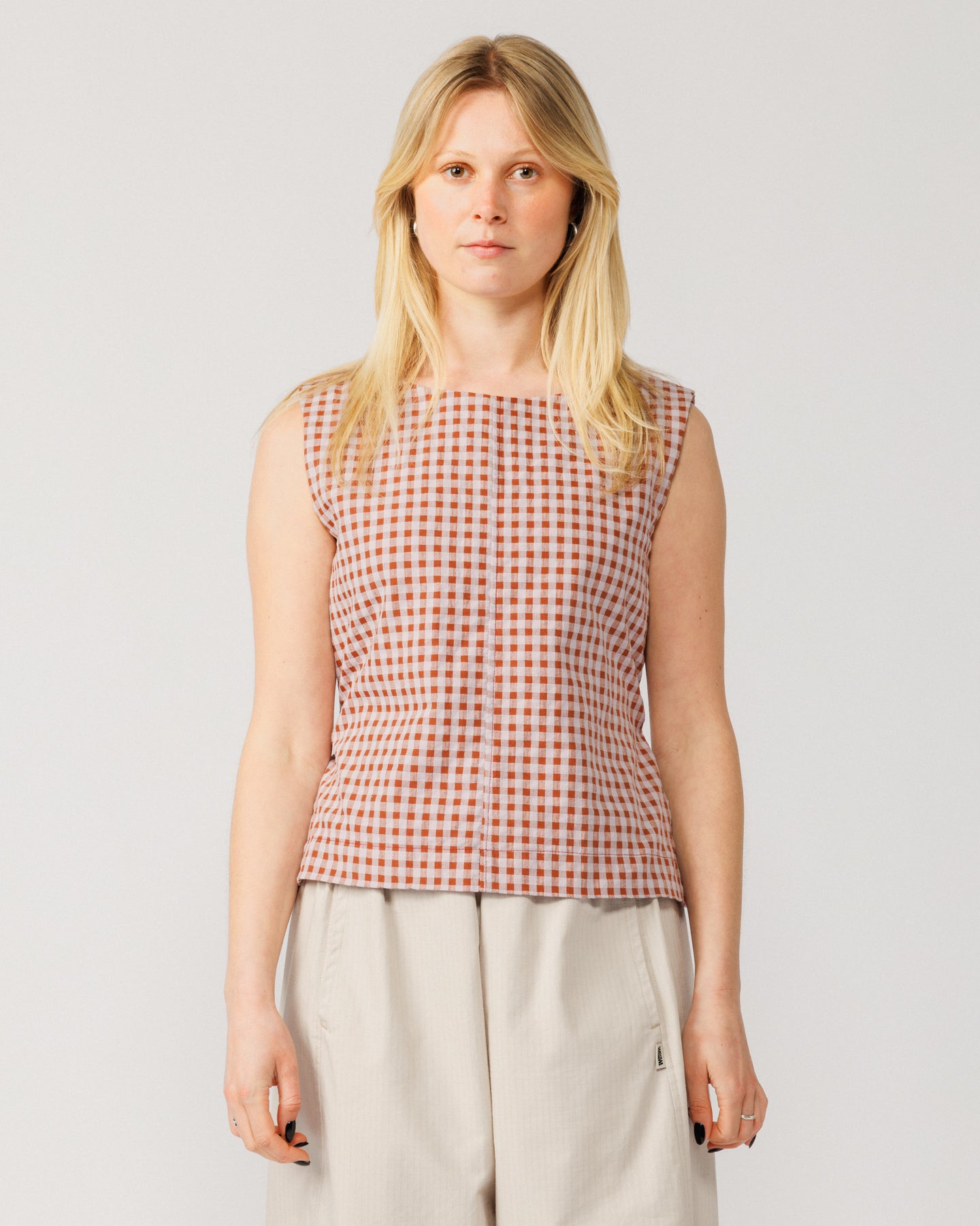 Your new warm-weather staple. The Aimee Top V2 arrives in a lightweight red checked fabric - effortless and easy to style. Improved where it counts; a better fit around the chest and neck, and a flattering wide boat neckline.