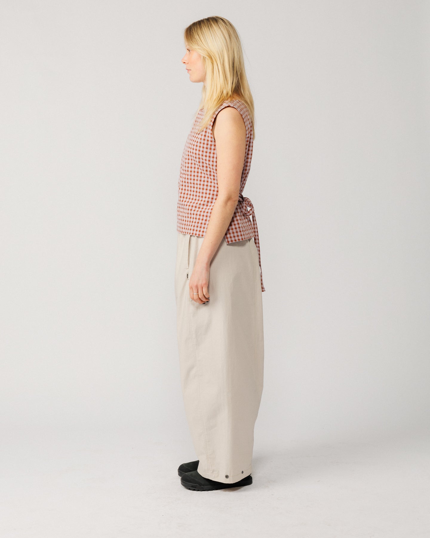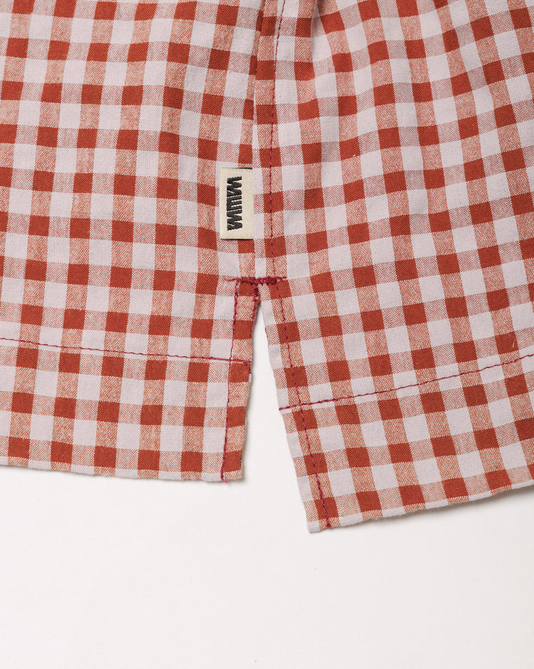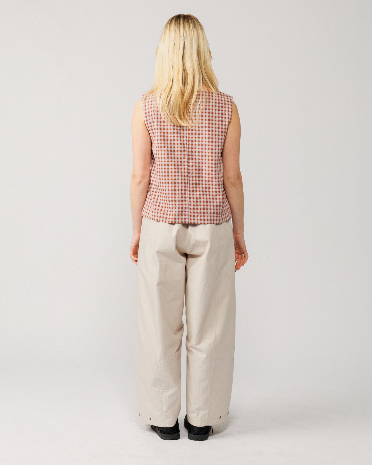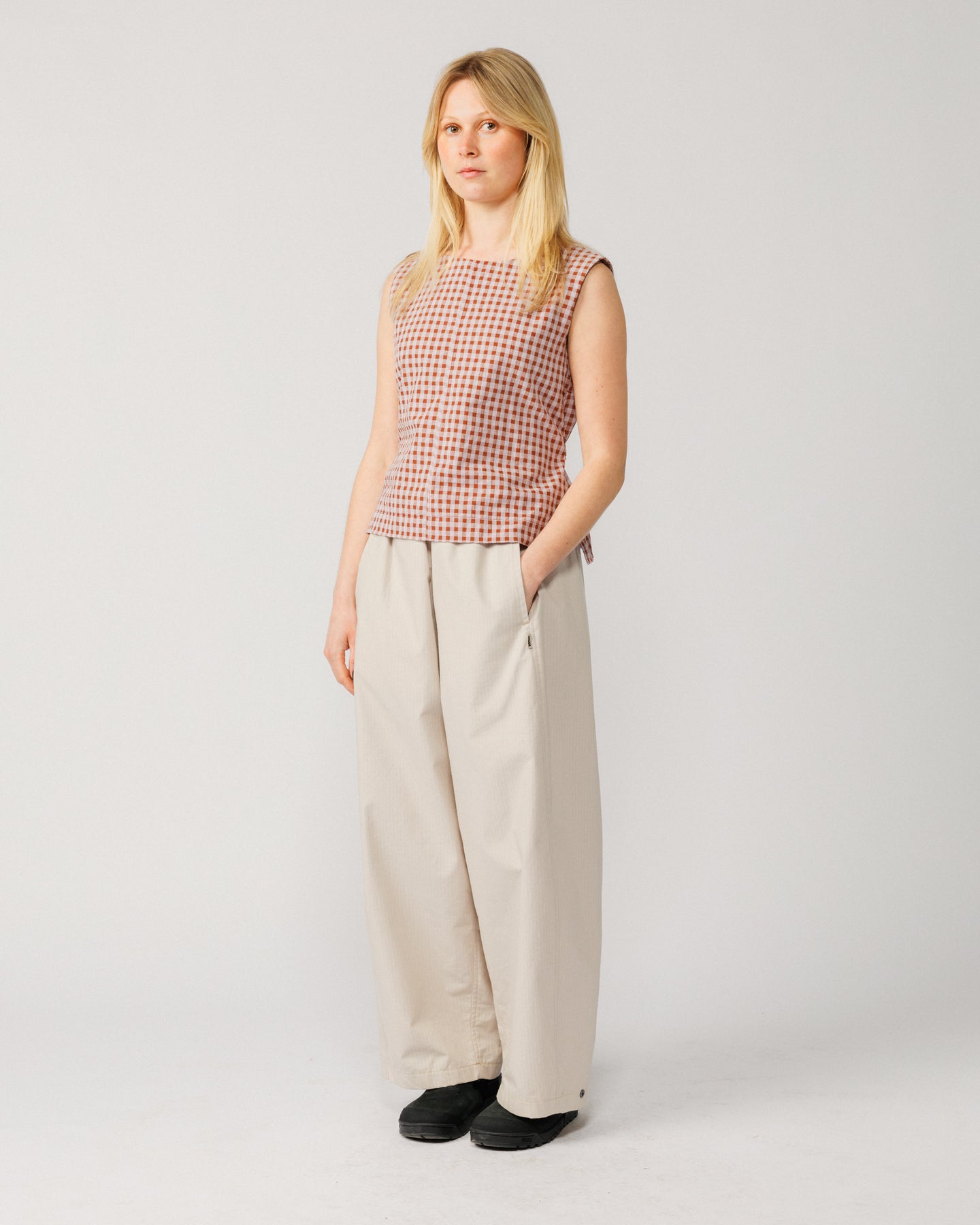 Your new warm-weather staple. The Aimee Top V2 arrives in a lightweight red checked fabric - effortless and easy to style. Improved where it counts; a better fit around the chest and neck, and a flattering wide boat neckline.