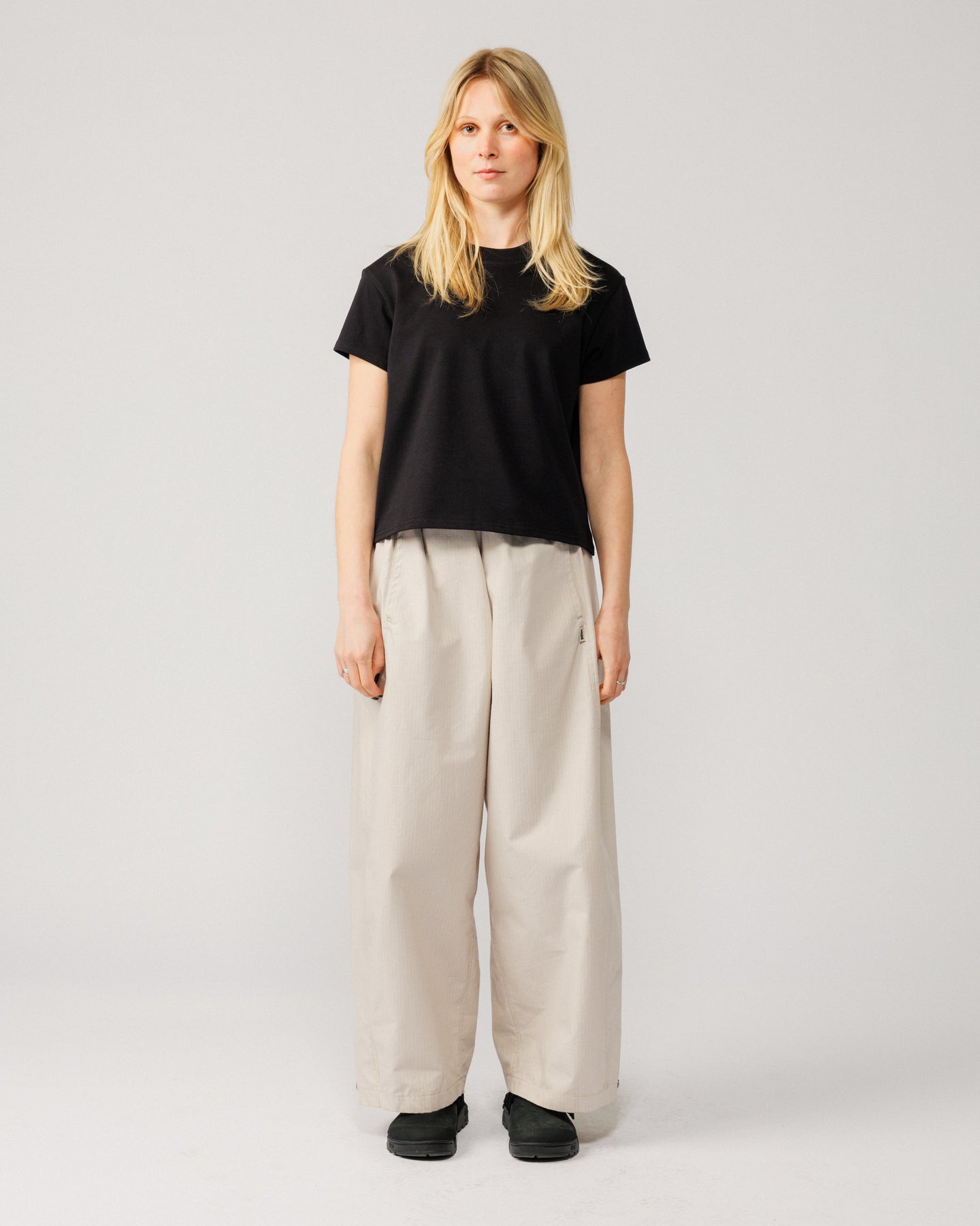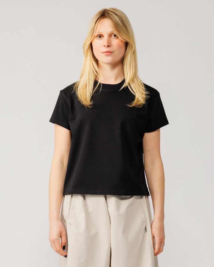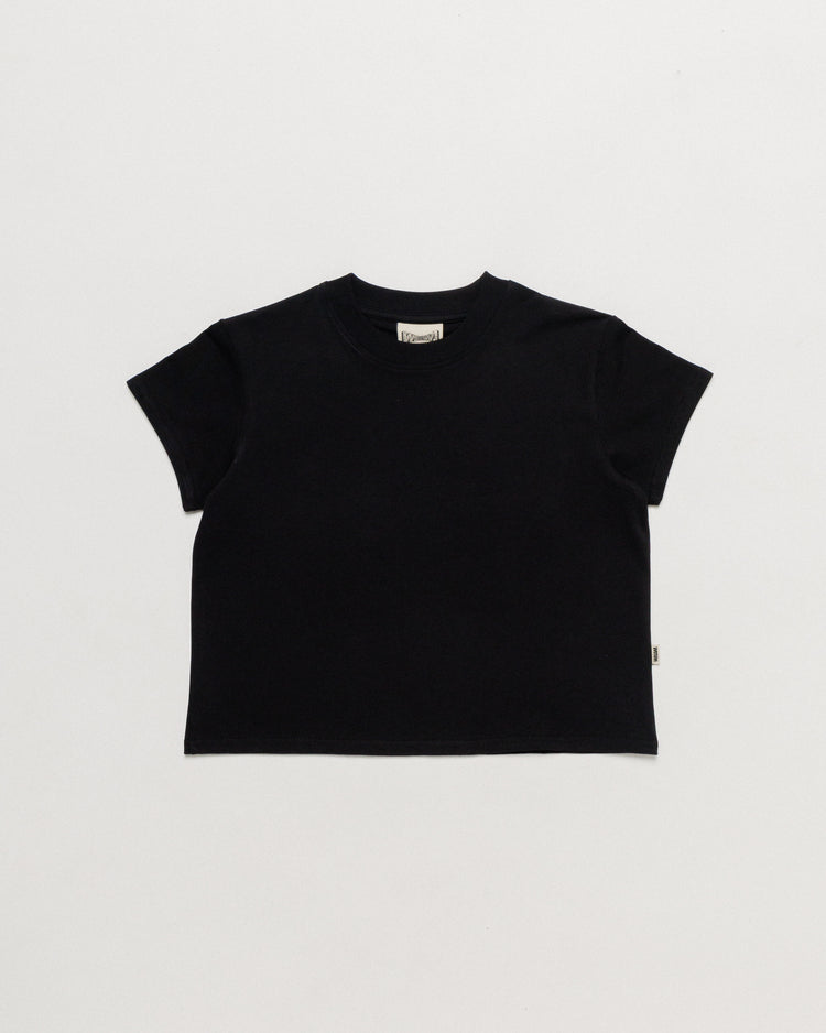 Cut from a soft 230gsm organic cotton jersey with a slight crop and short sleeve. Pre-shrunk and ready for regular washing, it holds its shape and softens with wear. Finished with a subtle logo in the side seam and a custom artwork size label.