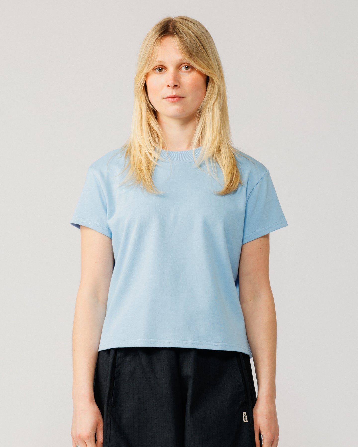 The Mid-Weight Cropped Organic T-Shirt in sky blue