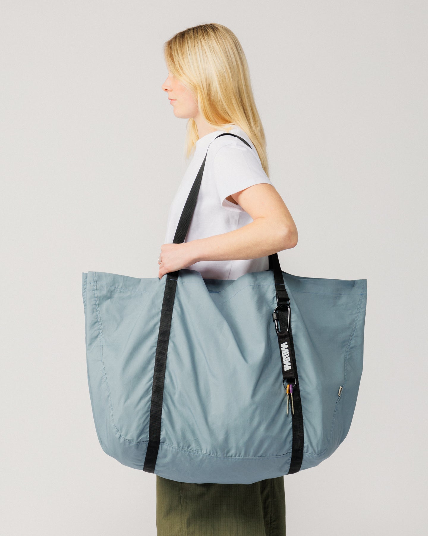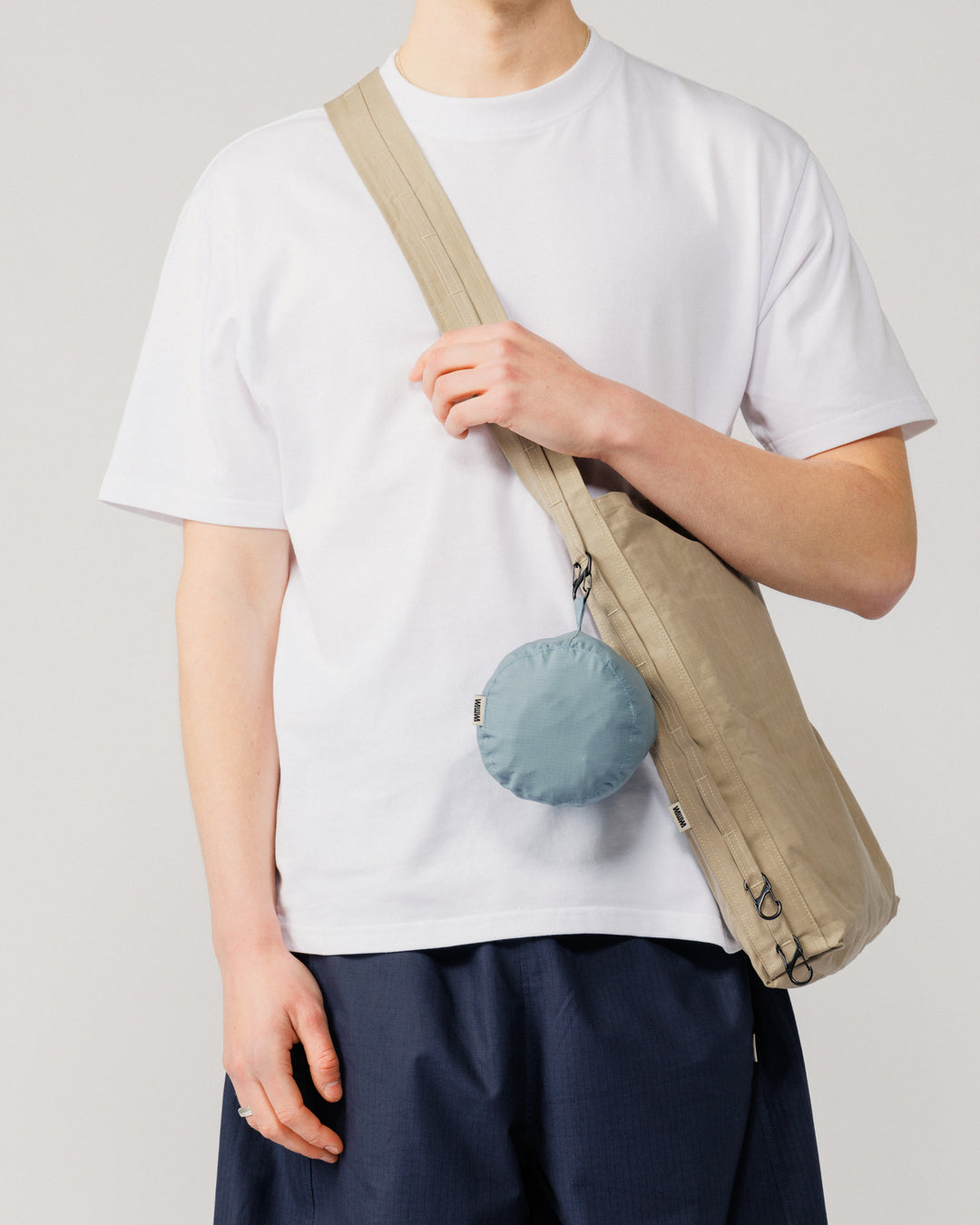 Made from a dry wax micro grid ripstop cotton with a subtle technical feel. At 115gsm it barely registers in your hand, but it's durable enough for repeat use and built to handle whatever you throw in it. Webbing straps keep it simple and strong.