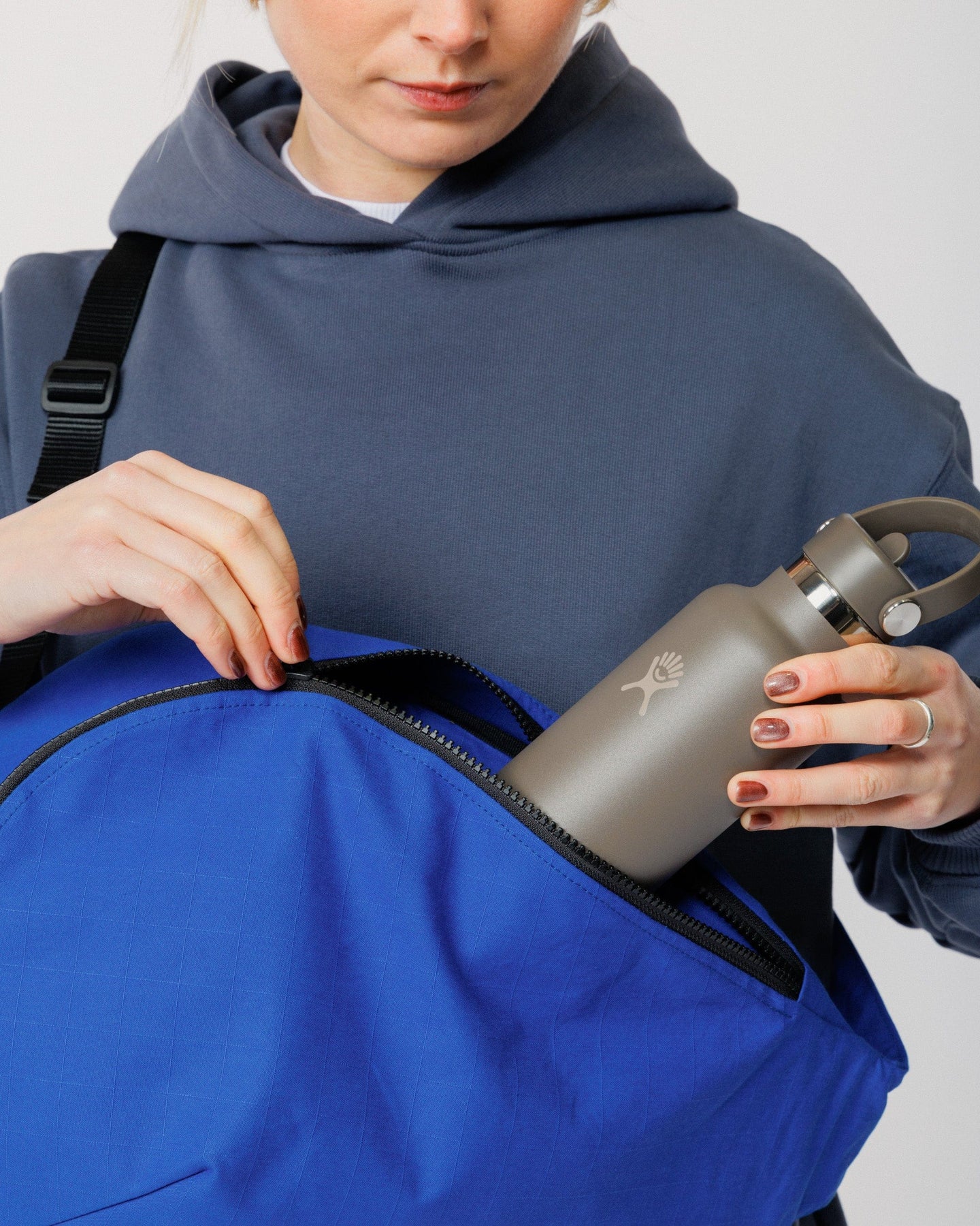 Designed for effortless everyday carry, the Crescent Crossbody in cobalt blue combines clean aesthetics with thoughtful functionality. Its streamlined silhouette sits comfortably against the body, creating a sleek profile whether worn on the back or swung round to the front for quick access.