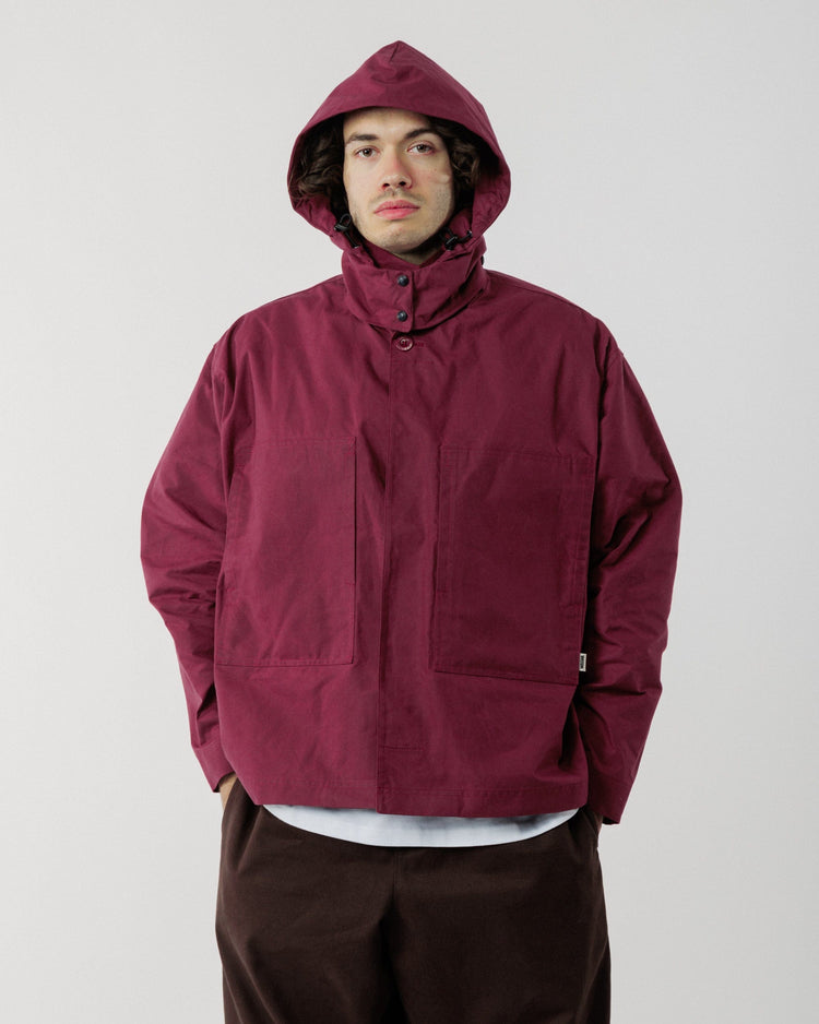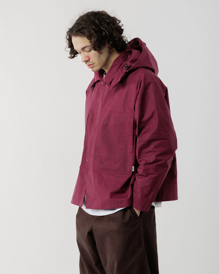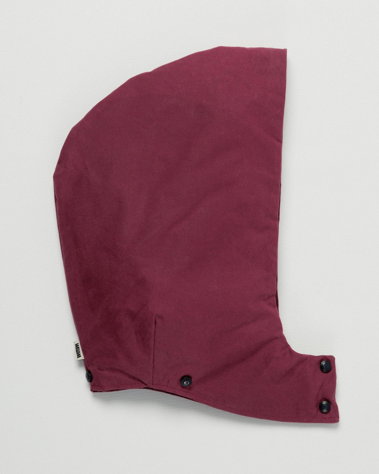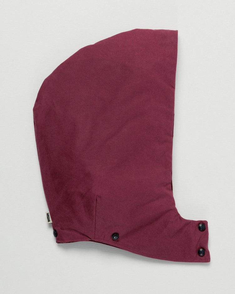 Embrace the depth of our Burgundy Detachable Hood, a contemporary take on classic outerwear. The perfect complement to your Nell Jacket, our detachable hood combines functionality with sophisticated design. Crafted from the same premium Scottish dry-waxed cotton as the jacket, it ensures consistent protection and style. The innovative tyre panel design and double-layered construction offer superior coverage, while multiple adjustment points allow for a customized fit around your face. Attaches seamlessly to your Nell Jacket with discrete poppers.