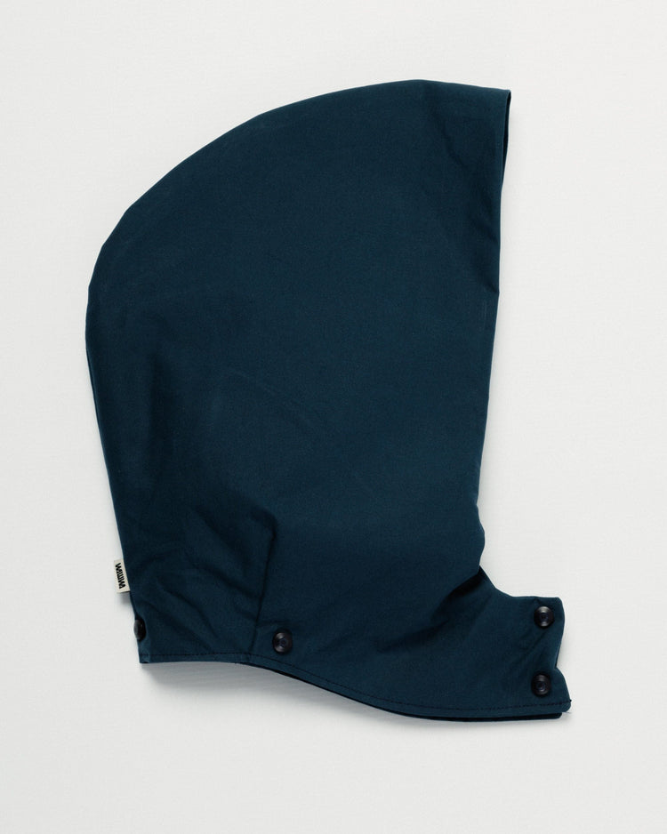 Embrace the depth of our Indigo Blue Detachable Hood, a contemporary take on classic outerwear. The perfect complement to your Nell Jacket, our detachable hood combines functionality with sophisticated design. Crafted from the same premium Scottish dry-waxed cotton as the jacket, it ensures consistent protection and style. The innovative tyre panel design and double-layered construction offer superior coverage, while multiple adjustment points allow for a customized fit around your face. Attaches seamlessly to your Nell Jacket with discrete poppers.