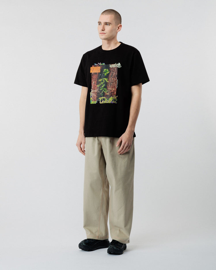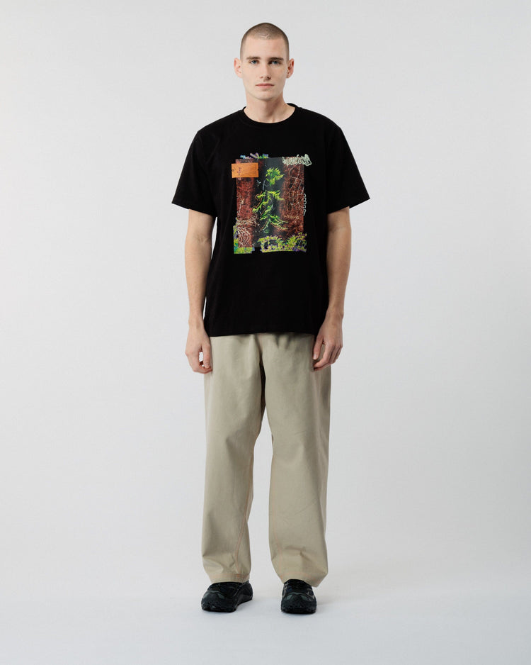 The Westing T-shirt in Black celebrates the quiet resilience of the British landscape - ferns growing through stone walls in the Peak District, captured in a unique hand-drawn overlay on documentary photography. This combination of artwork and photographic detail creates a striking, textured design that brings the wild edges of the UK into your wardrobe.