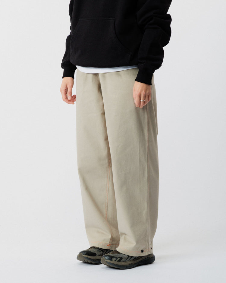 Our best-selling Zama Pants are back with a fresh update - this time in a clean stone canvas with bold red contrast stitching for a striking twist on a WAWWA classic. Same signature fit, same durability, now with detailing that makes them stand out.